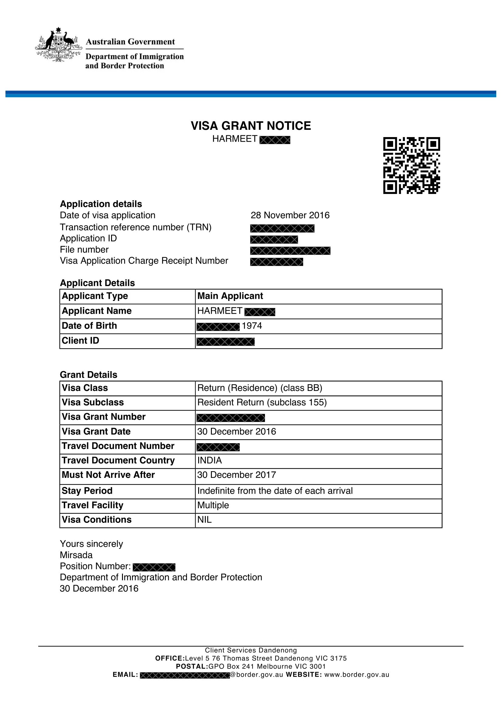 Harmeet – Visa Grant