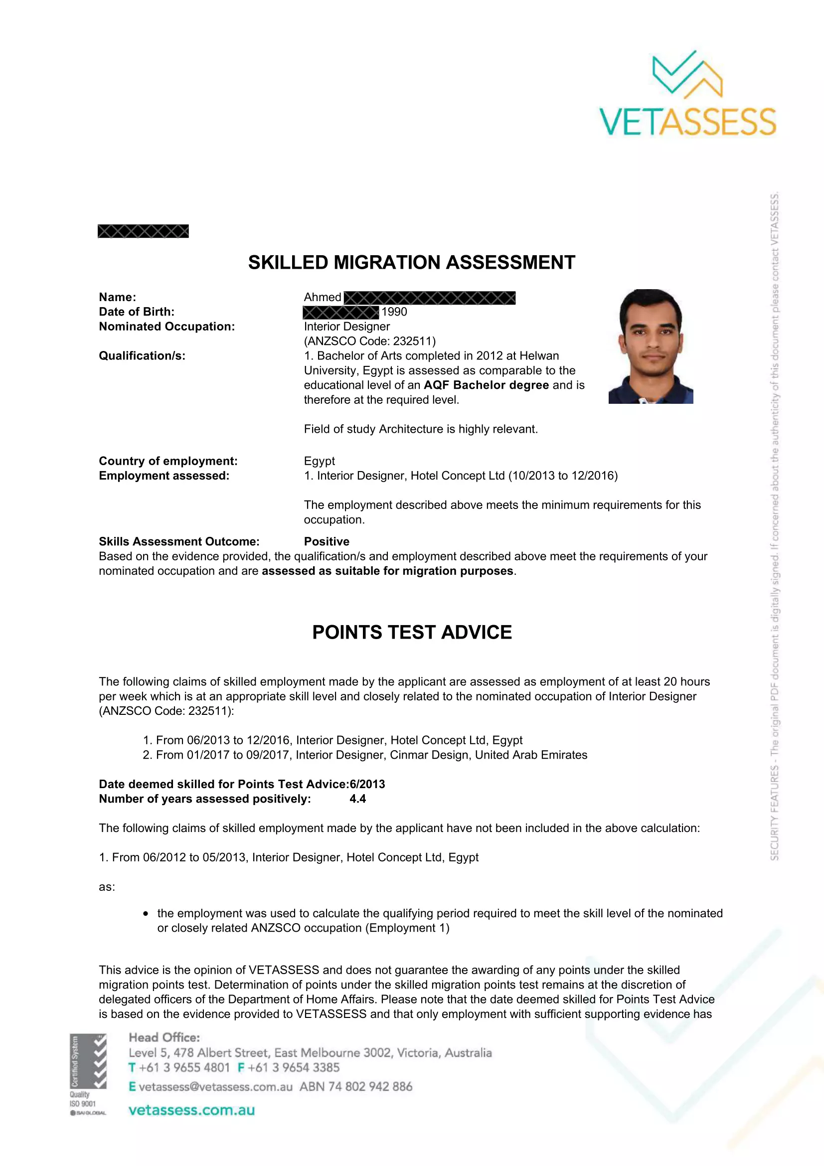 Ahmed – Skills Assessment