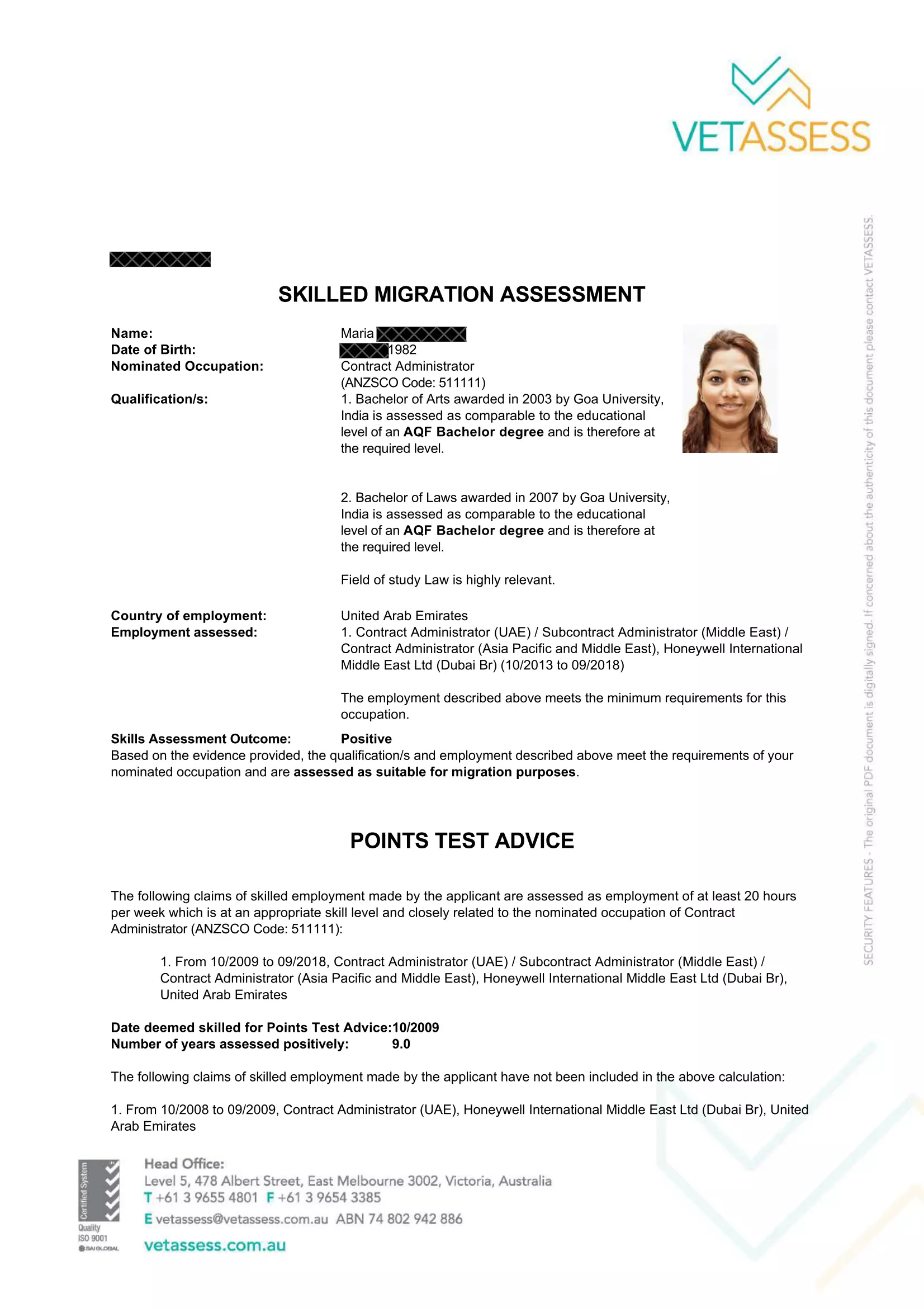 Maria – Skills Assessment