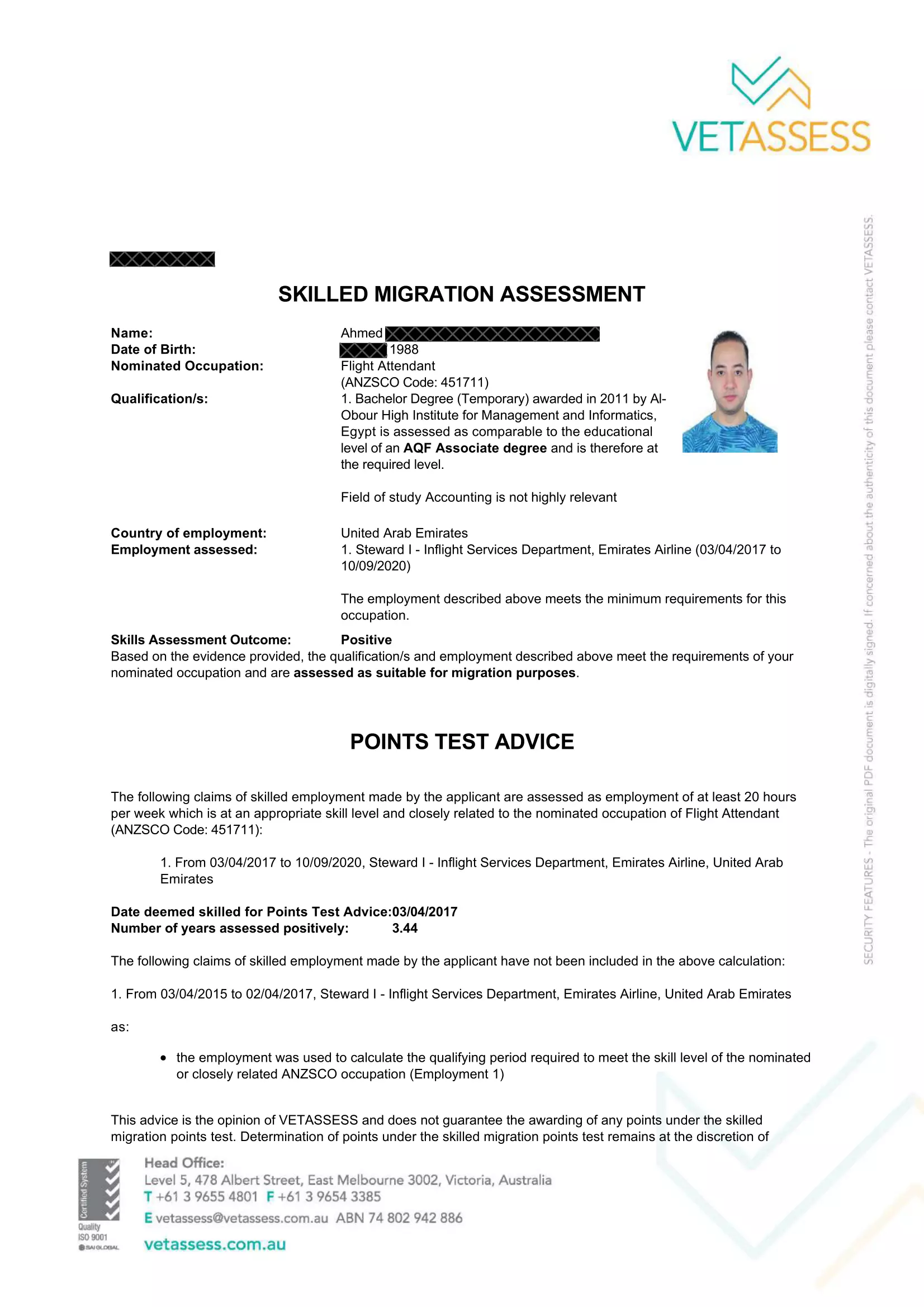 Ahmed – Skills Assessment