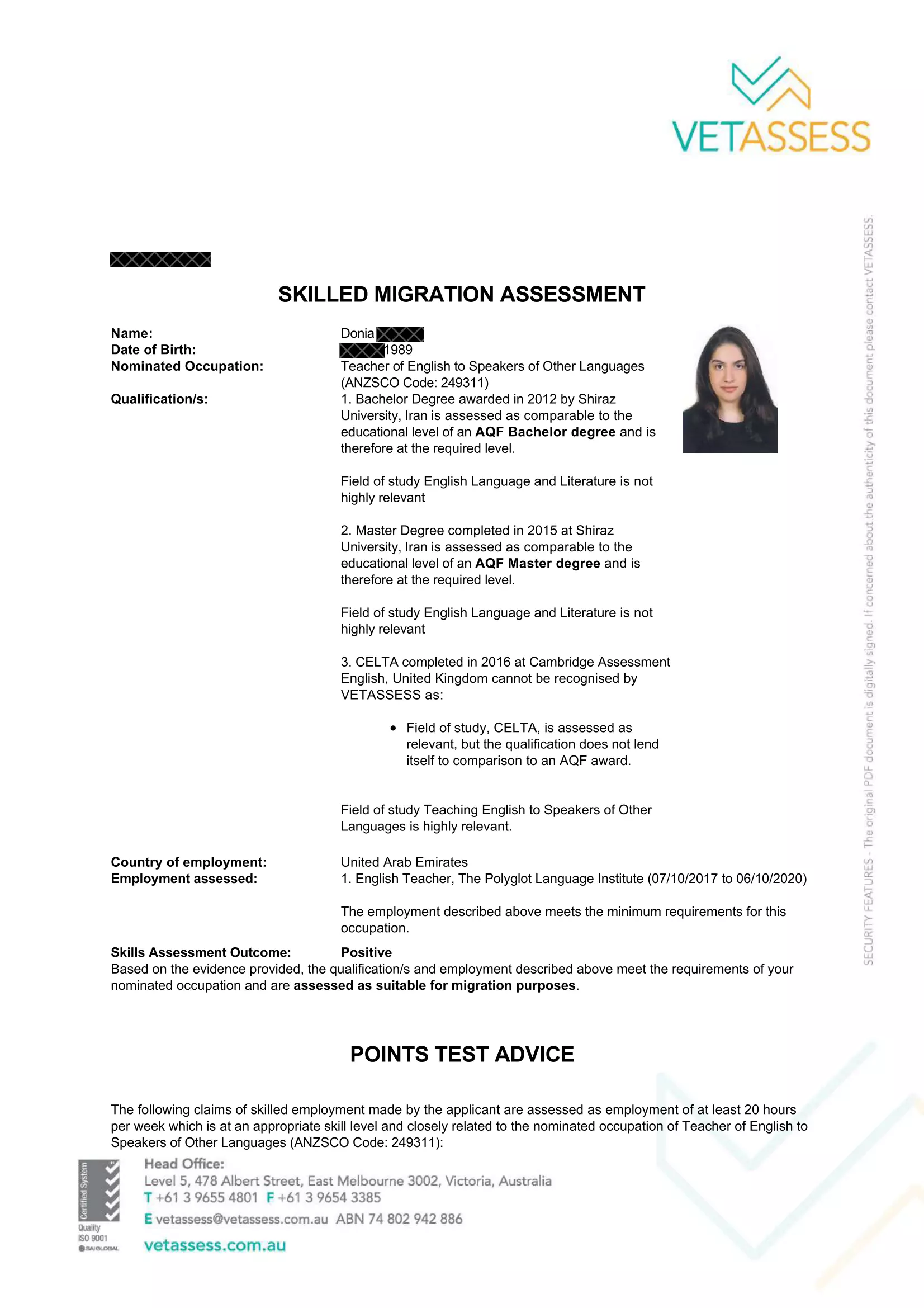 Donia – Skills Assessment