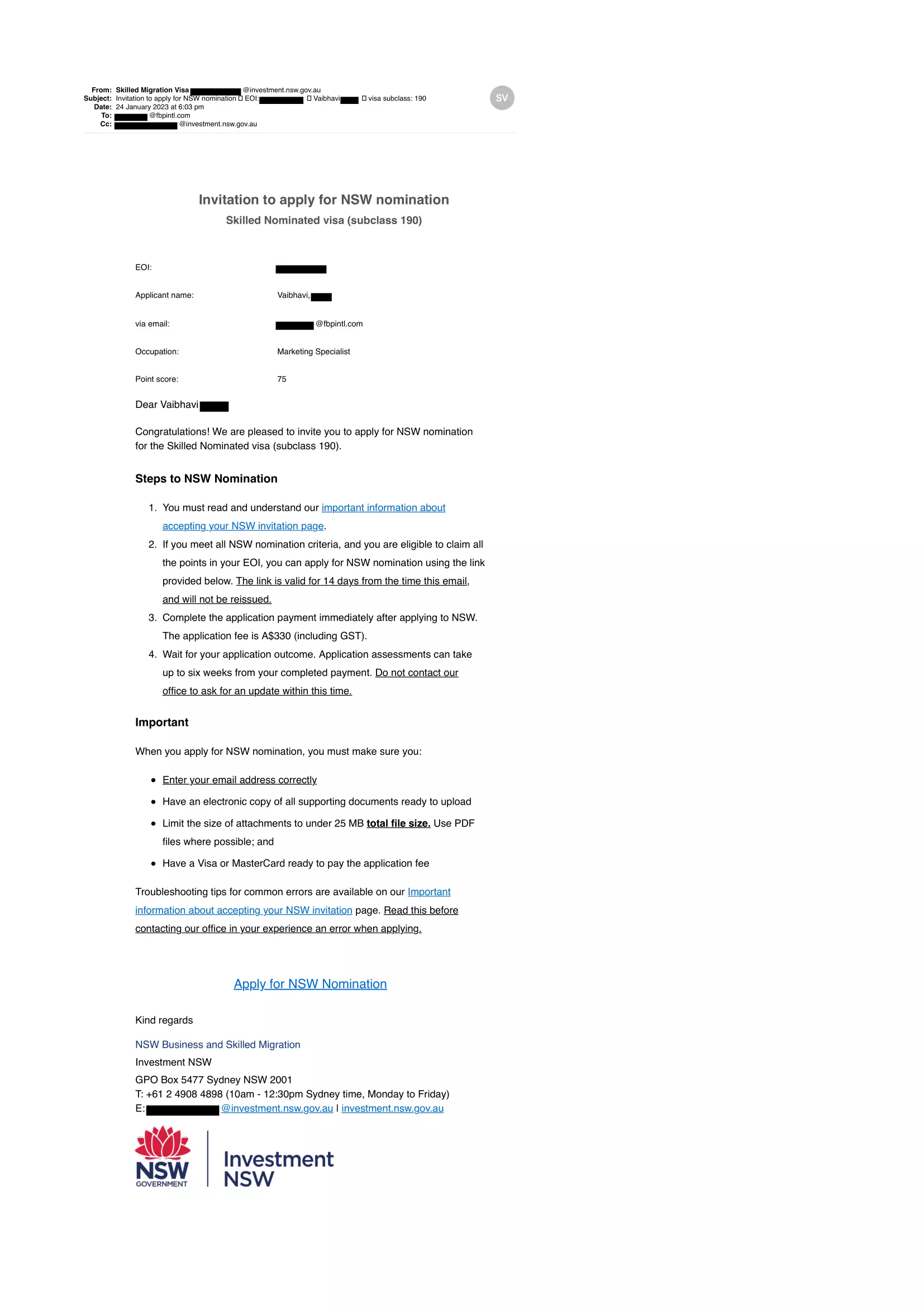 Vaibhavi – Invitation to apply