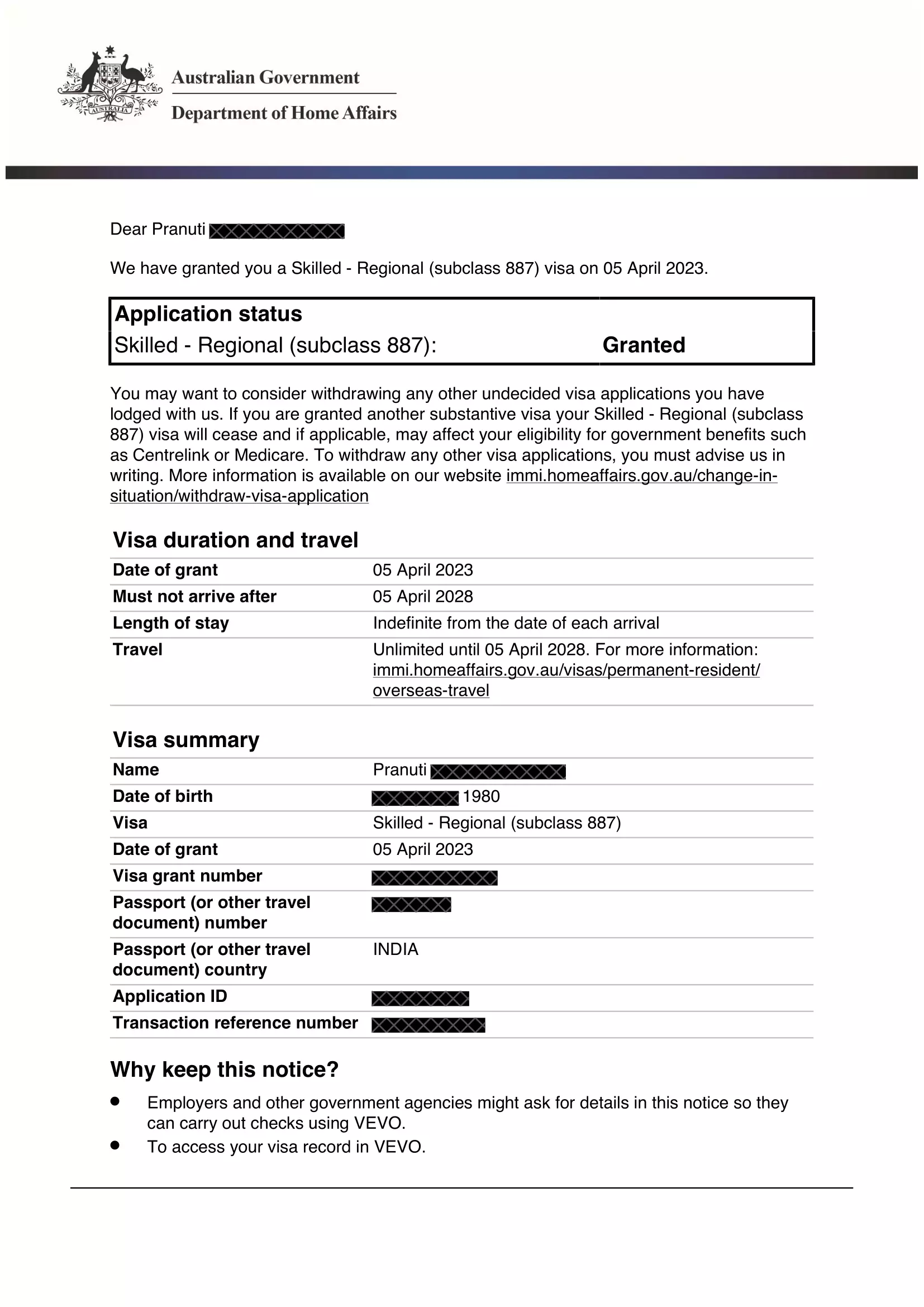 Pranuti – Visa Grant
