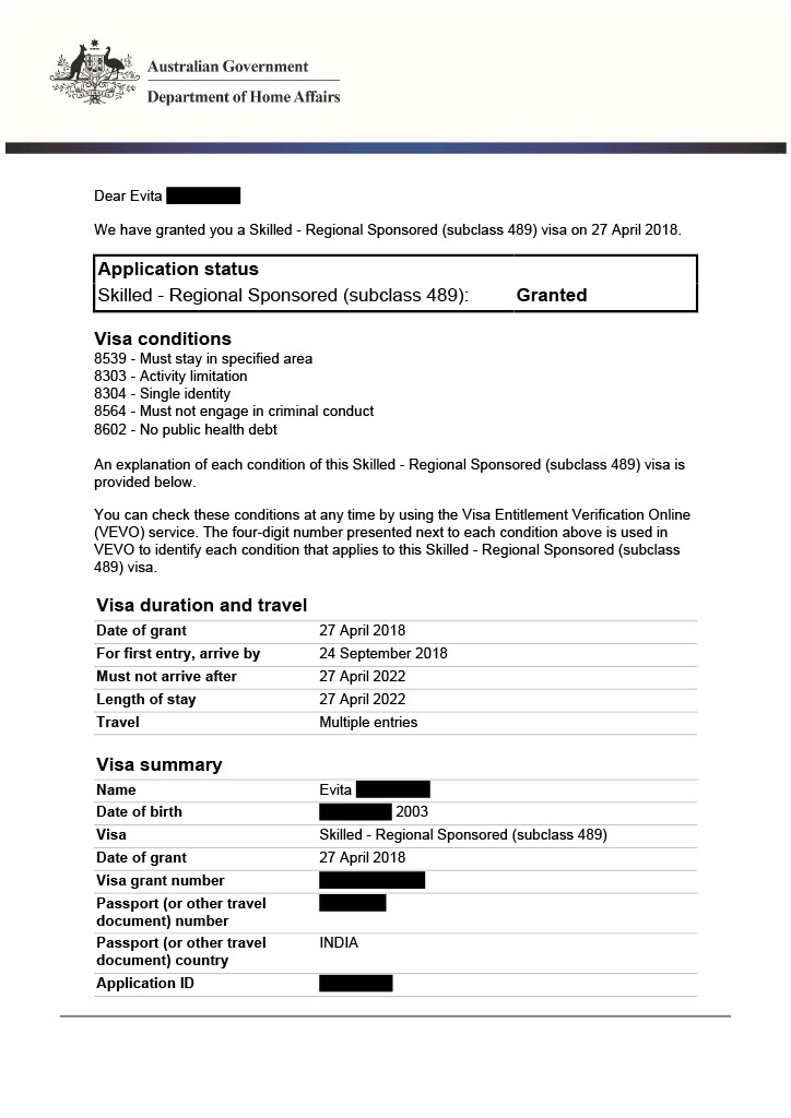 Evita – Visa Grant