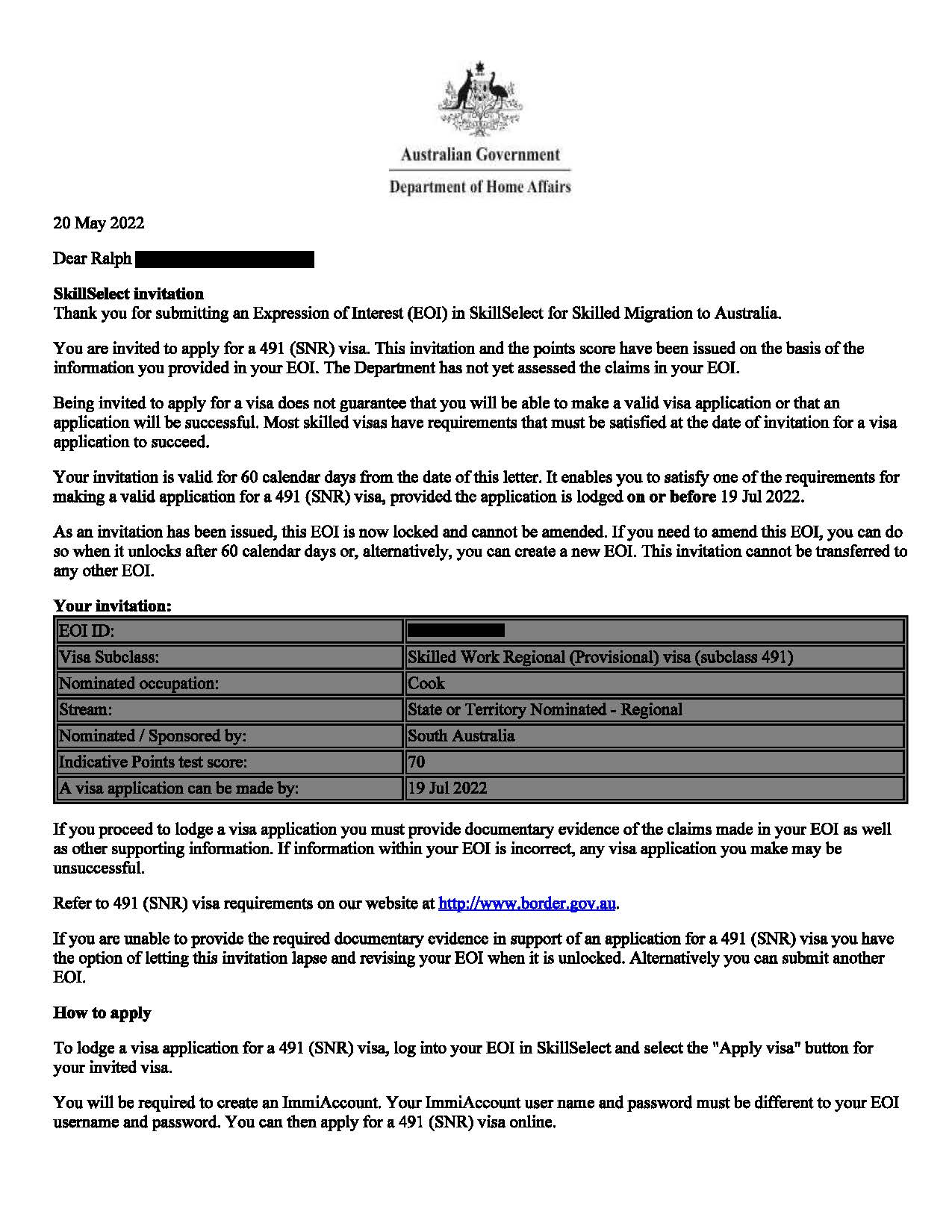 Ralph – Invitation to Apply